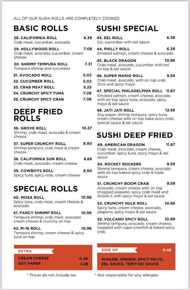 The menu at MOSA Hibachi & Sushi Grove is a delightful exploration of traditional Japanese flavors with a modern twist. Starving guests can indulge in hearty Hibachi options, including Hibachi chicken, steak, and shrimp—each plated with a generous side of fried rice or vegetables. Unique combinations like the Hibachi steak and chicken combo offer a balanced indulgence for any appetite. The average price for these delicious plates hovers around $12, ensuring good value.